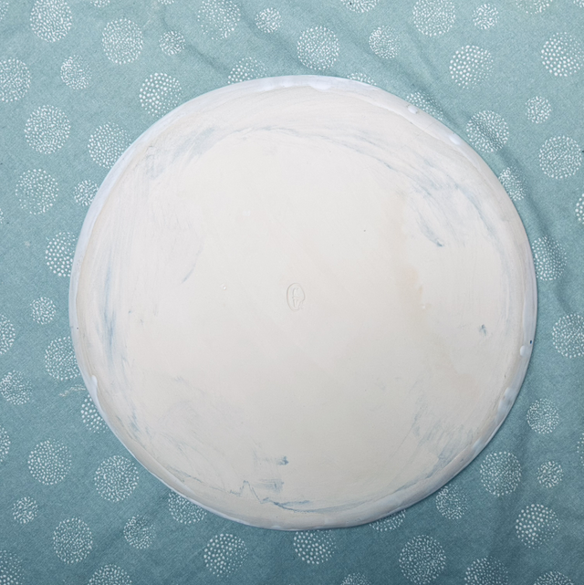 Ce plat en céramique, fait main, séduit par son émail blanc moucheté et sa large tache bleu intense au centre. Idéal pour sublimer vos plats (pizza, gâteau ou tarte généreuse) ou simplement décorer la table.