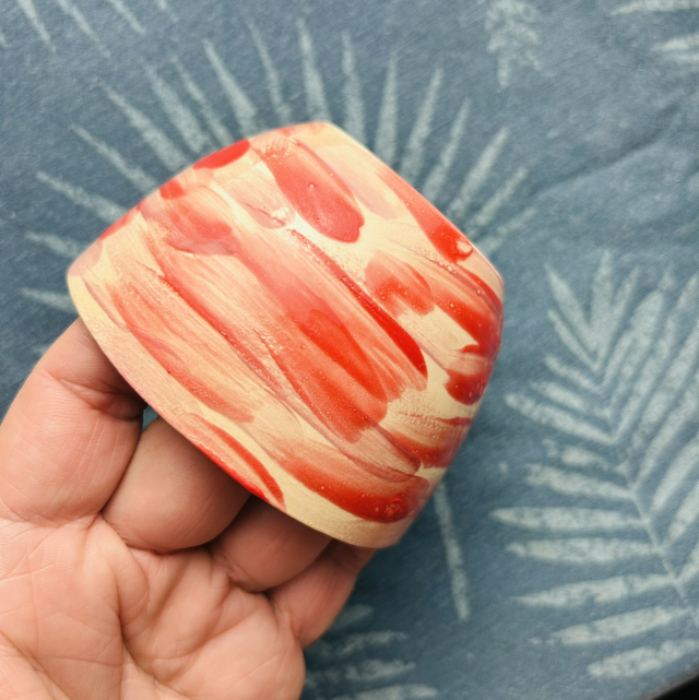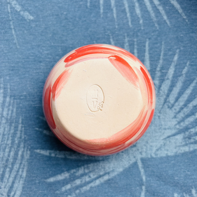 Tasse en céramique façonnée et décorée à la main dans mon atelier.