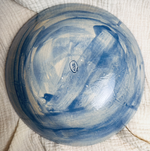 Un saladier bleu en grès,